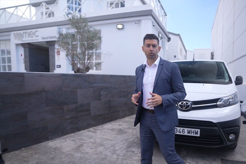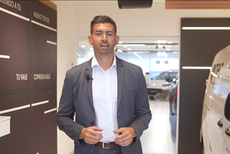 Testimonio de Beneharo Medina compartiendo su experiencia positiva en Toyota City Canarias, resaltando la atención recibida, la variedad de vehículos eléctricos disponibles y las ventajas del servicio Toyota.